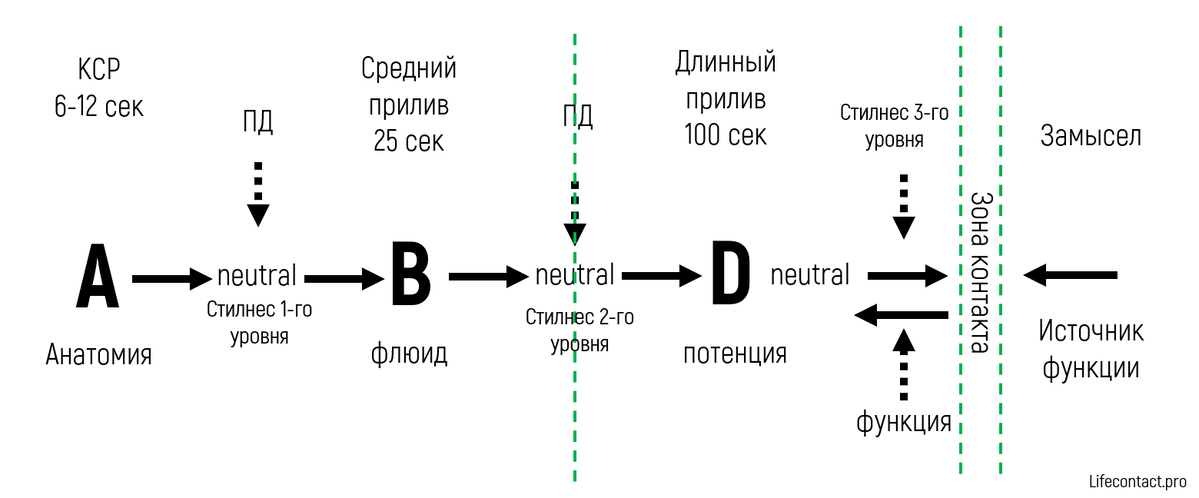Чем такой формат хорош? – Вся группа находится в резонансе с изучаемым процессом. Да я и сам так веду семинары. Но что в этом формате практически нигде не встречается? Это общее представление о стадиях процесса по пути следования к конечной цели – естественному проявлению здоровья, и индивидуальная готовность системы клиента к той или иной практике. Последнее – издержки группового обучения.